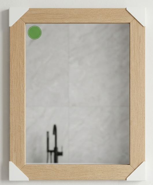 Khung được xử lý chống ẩm, chống cong vênh và mối mọt, phù hợp với môi trường nhà tắm. Mặt gương sử dụng phôi dày, tráng bạc giúp chống ố mốc và giữ hình ảnh luôn sáng rõ, trung thực.