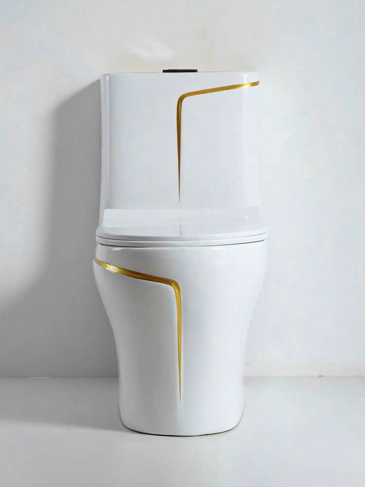 Bồn cầu một khối trắng viền vàng Luxury – bồn cầu cao cấp thiết kế thanh lịch, mang phong cách sang trọng cho không gian phòng tắm hiện đại. Sản phẩm nổi bật với tông màu trắng sứ bóng kết hợp đường kẻ vàng kim tinh tế, tạo điểm nhấn đẳng cấp, phù hợp với các không gian như villa, penhouse hoặc căn hộ cao cấp. Bồn cầu một khối trắng viền vàng Luxury giúp nâng tầm thẩm mỹ và trải nghiệm sử dụng.